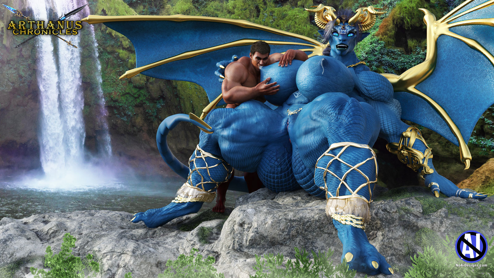 Photos 2 and 3 – All of the Good Dragonesses enjoy taking waterfall baths – at least twice per day. A refreshing waterfall bath is also a good excuse for some ‘sexy time’ with her husband.