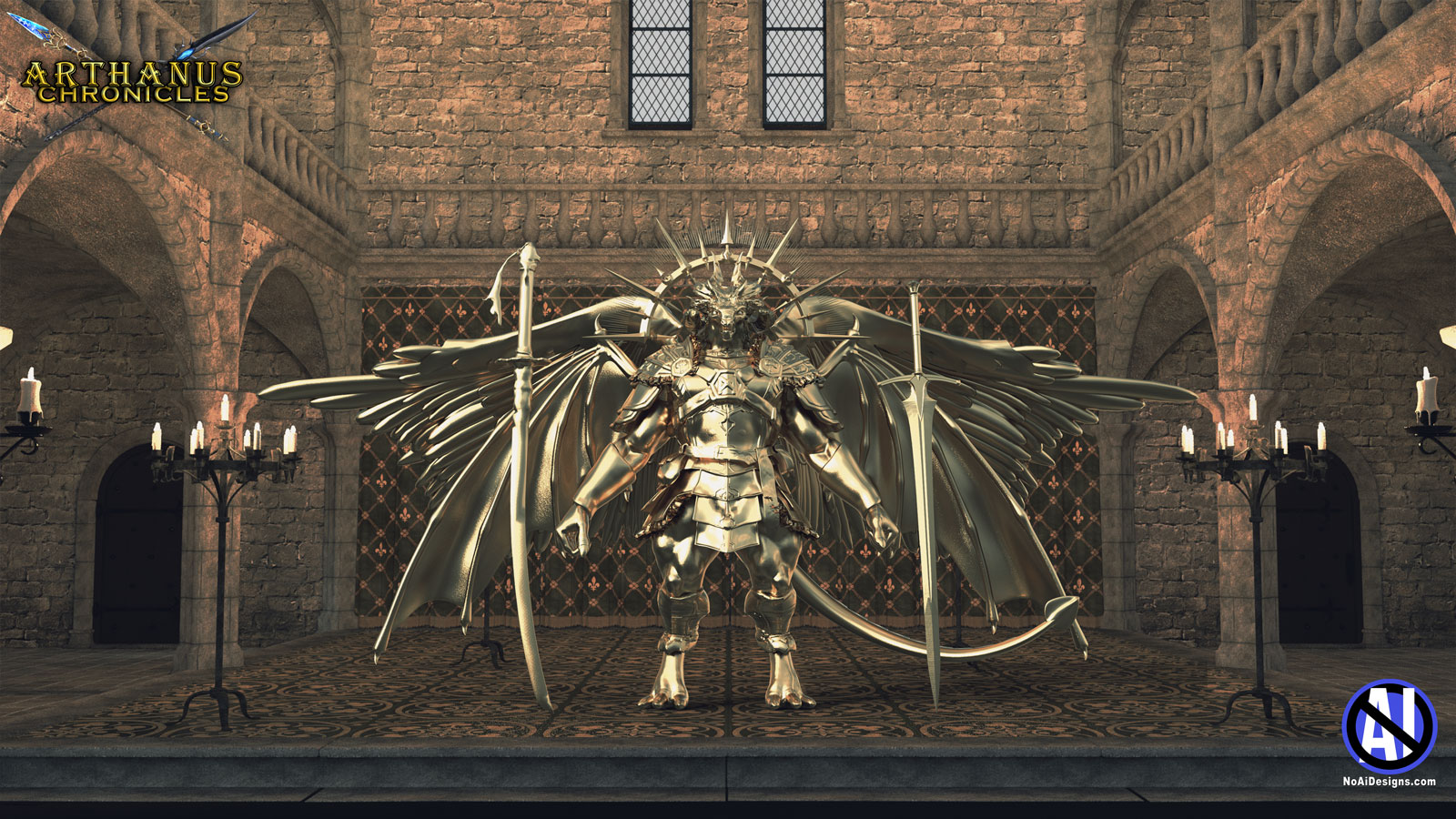 Photo 2 – The Grand Overseer – also known as “The Paragon of Virtue” or the “All-Father”. He is 15 feet of pure, majestic, celestial might and power – holding his two giant blades, “Honor” and “Justice”.