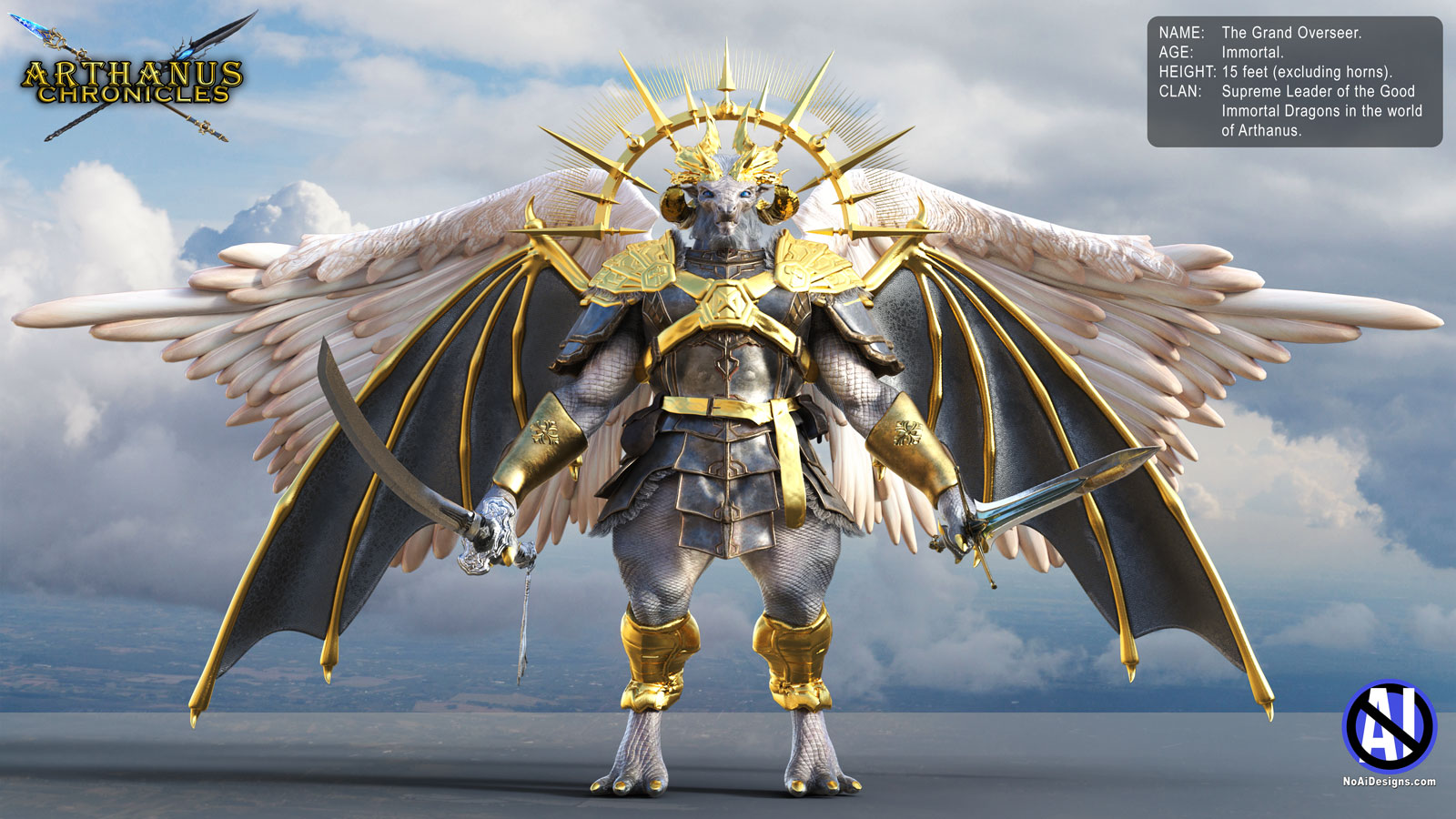 The Grand Overseer is the first Immortal Dragon forged by the world of Arthanus. He is the Supreme Leader over all of the Good Dragonesses. He is also known as “The Paragon of Virtue” or the “All-Father”. The Grand Overseer resides on the moon named “Luna of Luminescence”.